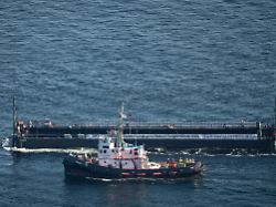 Der in der Ostsee gestrandete Buckelwal kommt in dem für seinen Transport vorgesehenen Lastkahn an. Das Tier bewegt sich in die sogenannte Barge, nachdem Helfer ihn zuvor mit Gurten in diese Richtung gezogen haben.